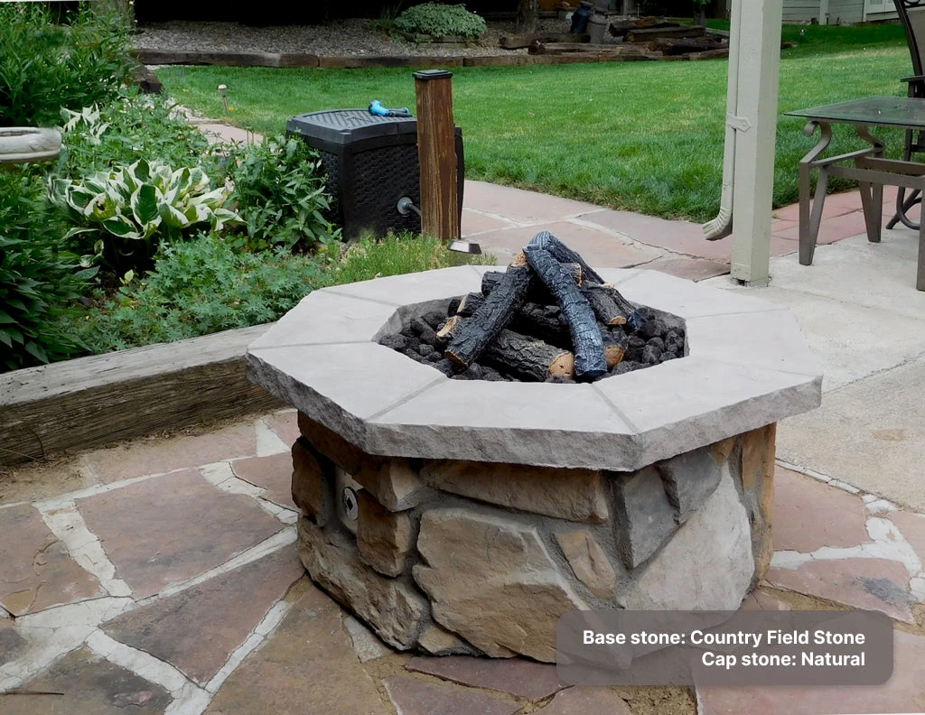 The 42″ Octagon Custom Stone Gas Fire Pit is a must-have for any backyard, patio, or garden so you can enjoy a warm fire with the simple push of a button or a match light.