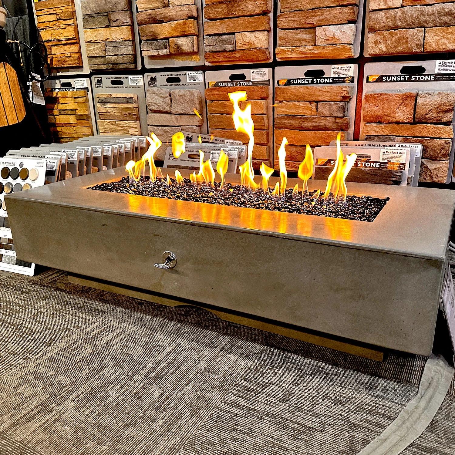 Its smooth GFRC concrete finish and stainless steel burner ensure aesthetics and functionality, while the low-profile design complements various fire media, such as lava rock or fire glass.