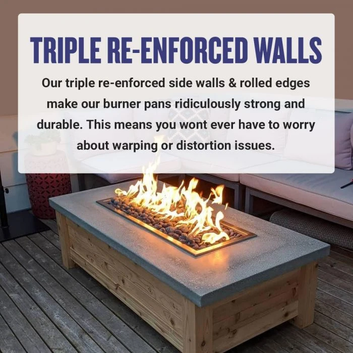 Our rectangular drop-in burner pans come with a convenient lip so that they can easily be inserted into your fire pit and then removed after use.